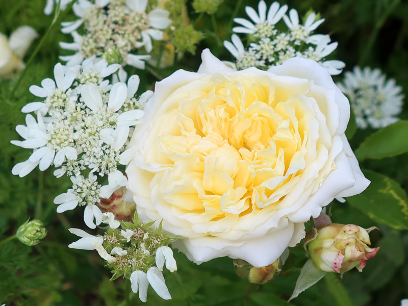 Have to be careful working underneath the Locust tree - nasty sharp spikes cover its branches, pieces of which have fallen off and are lying like nasty traps in the garden below, to be grabbed (ouch) or even sat on (OUCH!). And also I need to keep a careful eye on the beautiful hanging rambling rose Kiftsgate (which has the sweetest perfume). Ouch again!