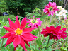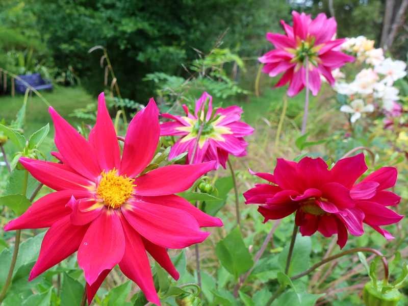 So here's the plan. I plant the two remaining Michelias. I keep working (I think this means clearing Carexes) in the end of the Hump Garden. I get some wire hoops to stop the dahlias flopping (they were propped up by the grasses). The garden is full of beautiful dahlias flowering. And, thanks to the bees, lots of the colours have blended together.