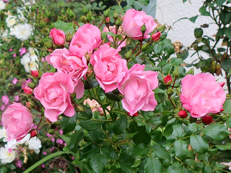 I've had to put on my little hoses. I've had to water things that are newly planted (like the new roses below the glass-house). I can ignore the noise (as long as nothing falls down on me). Back soon.