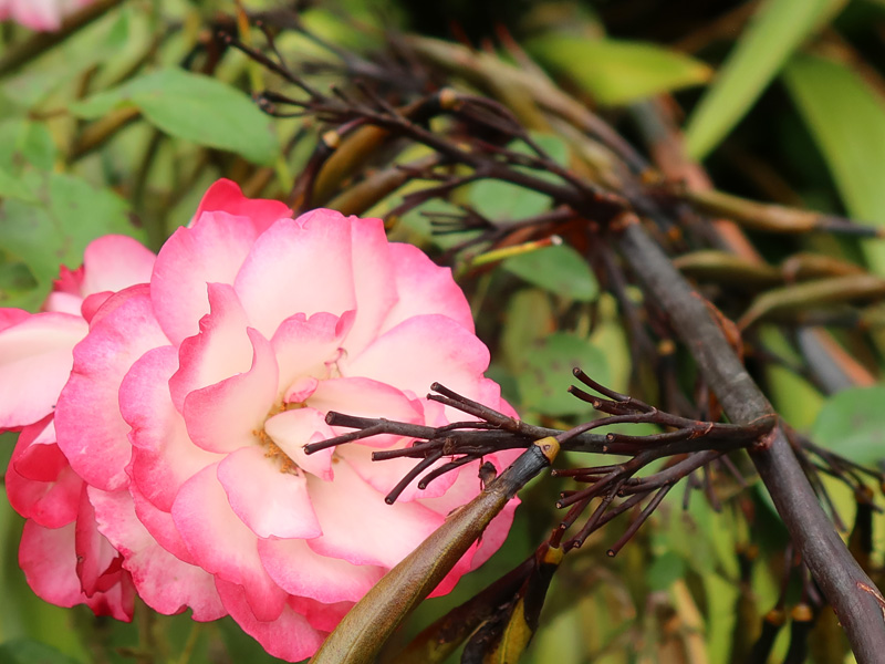 Am back with some lovely roses for the house vases. The rain shadow of the nor-west is now reaching us - raindrops! In other words, the wind is so strong that rain is coming over the top of the mountains. It's too strong for me.