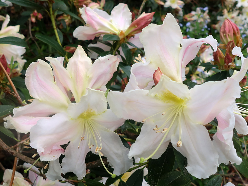 So the garden may be missing me, but it looks magnificent. I love the spring flowering shrubs, everything with pink flowers (which I find so cheering), the little blues (can't forget those forget-ne-nots), and the fresh new greenery. The Pittosporums are flowering - maybe they are the reason for my sneezing. The late flowering daffodils are so pretty.