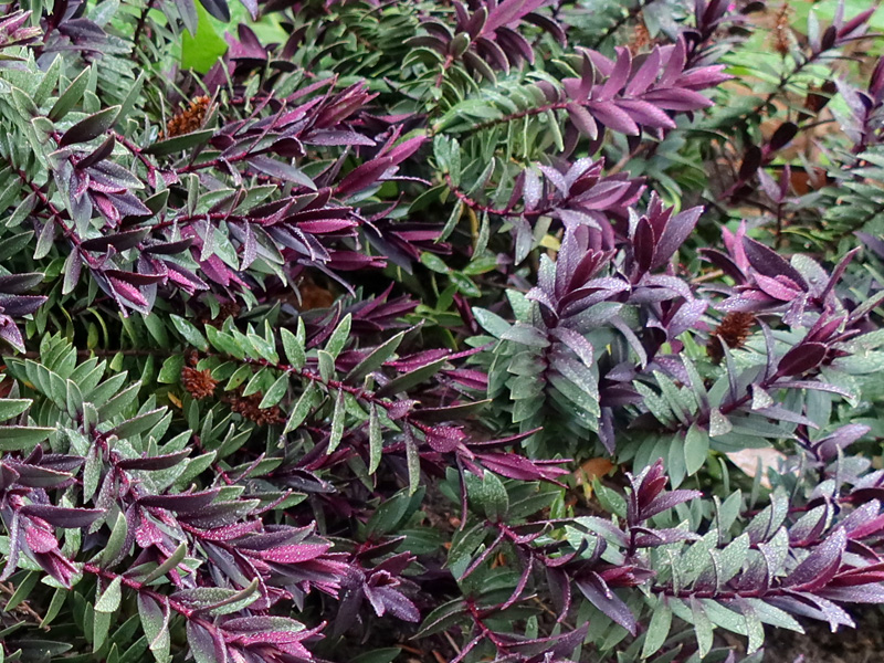 Have planted four of the new Hebes alongside the walkway over to Pond Cottage. Took absolutely ages to dig the planting holes, had to use the slim hand digger, lots of stones to remove. Only one to go. Now the skies are nicely overcast, perfect for taking photographs.