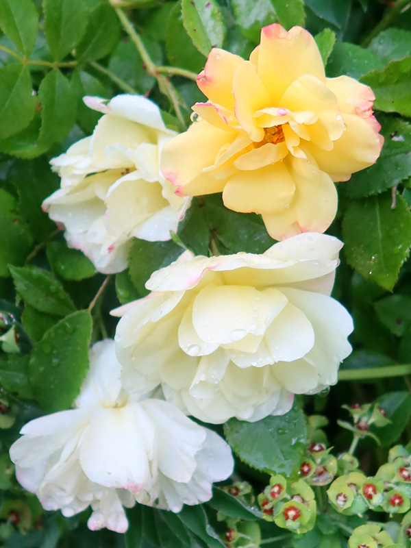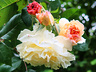 But because I grow over two hundred roses in my garden, such little details are missed. I wander over to say hello to Pat, and find not one precious apricot bud, but lots and lots of floppy blooms - some with petals already falling off. Eek!