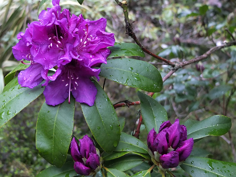 The Bumble Bee rhododendrons in Google Images have varied tinges of magenta, or not, depending on the light and the camera. Mid to late season flowering? A black flare in the petals? What do you think?